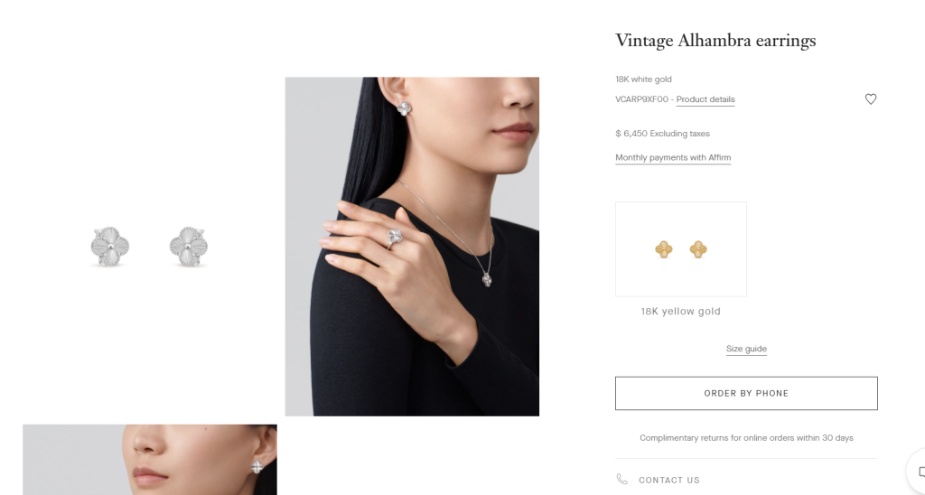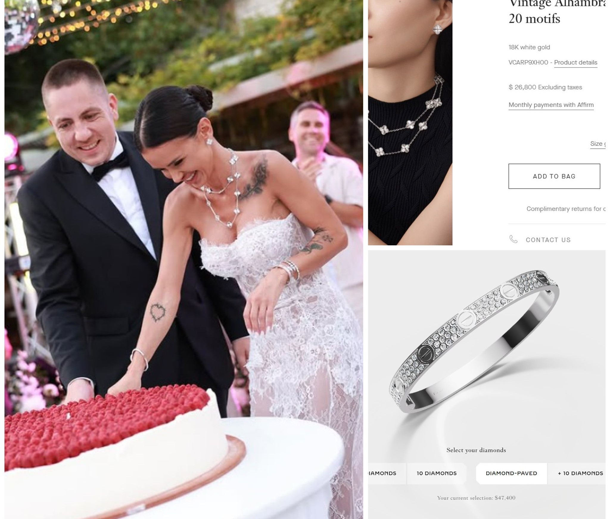 Продължаваме с обеците към колието, на стойност 6450 долара или 10 000 лв. Те са отново на марката Van Cleef & Arpels и са част от комплекта, който брюнетката е избрала. На снимката горе се вижда, че Мария ги е използвала също и за сватбения си ден.