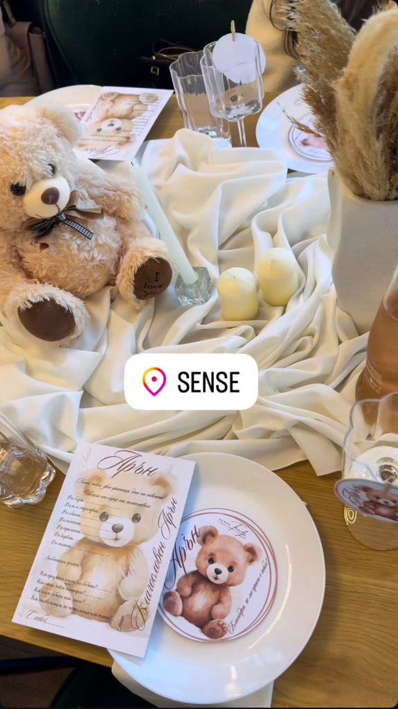 Погачата беше в бяло, синьо и бежово, а навсякъде се виждаха малки сладки мечета. Бебе Арън беше центъра на събитието и задмина дори майка си по интерес от присъстващите.