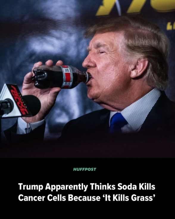 Доналд Тръмп често може да бъде забелязан да похапва нездравословна храна, както и да пие газирани напитки. Той отново привлече вниманието с провокативно изказване, свързано именно с газираното. В типичния си стил той коментира темата с репликата: „Щом убива трева, убива и рак“, което бързо предизвика реакции както в социалните мрежи, така и сред експерти.