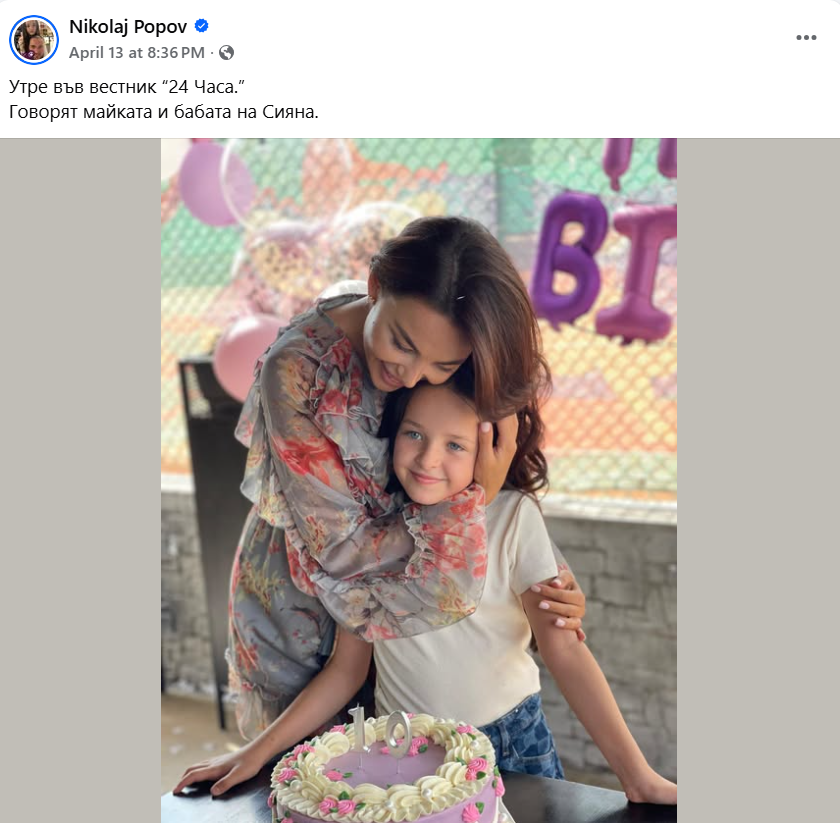 „Говорят майката и бабата на Сияна”, заяви Попов в социалните мрежи.